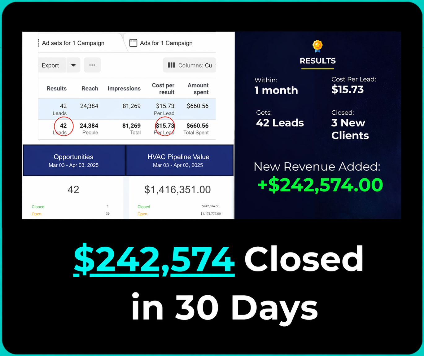 North Ridge Heating & Air closes $242K in 30 days with high-intent commercial HVAC leads.